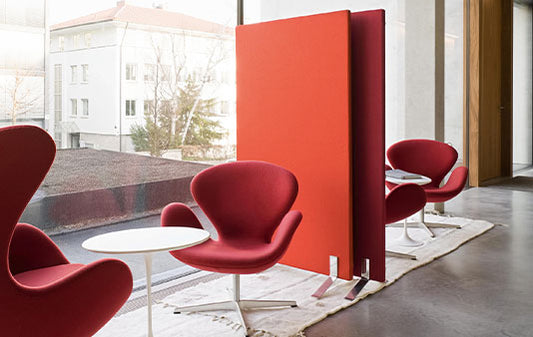Akustik Panel, ofis içerisin ölçülü bir şekilde planlarak yerleştilir. Çalışma masalarına akustik seperatör, ayraç olarak akustik paravanlar, tavanlara asma akustik paneller eklenerek hem şık bir ortam yaratılır hem de yankı problemi tamamen çözülerek konforlu bir çalışma ortamı oluşturulur.